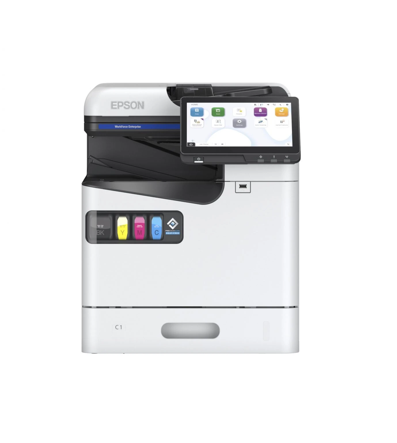 Yeni “C” şekilli kağıt yolu, AM-C400’yi daha kompakt bir A4 cihazı haline getirir. İnce tasarıma rağmen yüksek bir kağıt kapasitesi (maks. 2.100 sayfa), hızlı FPOT ve yüksek baskı ve tarama hızı sunar.